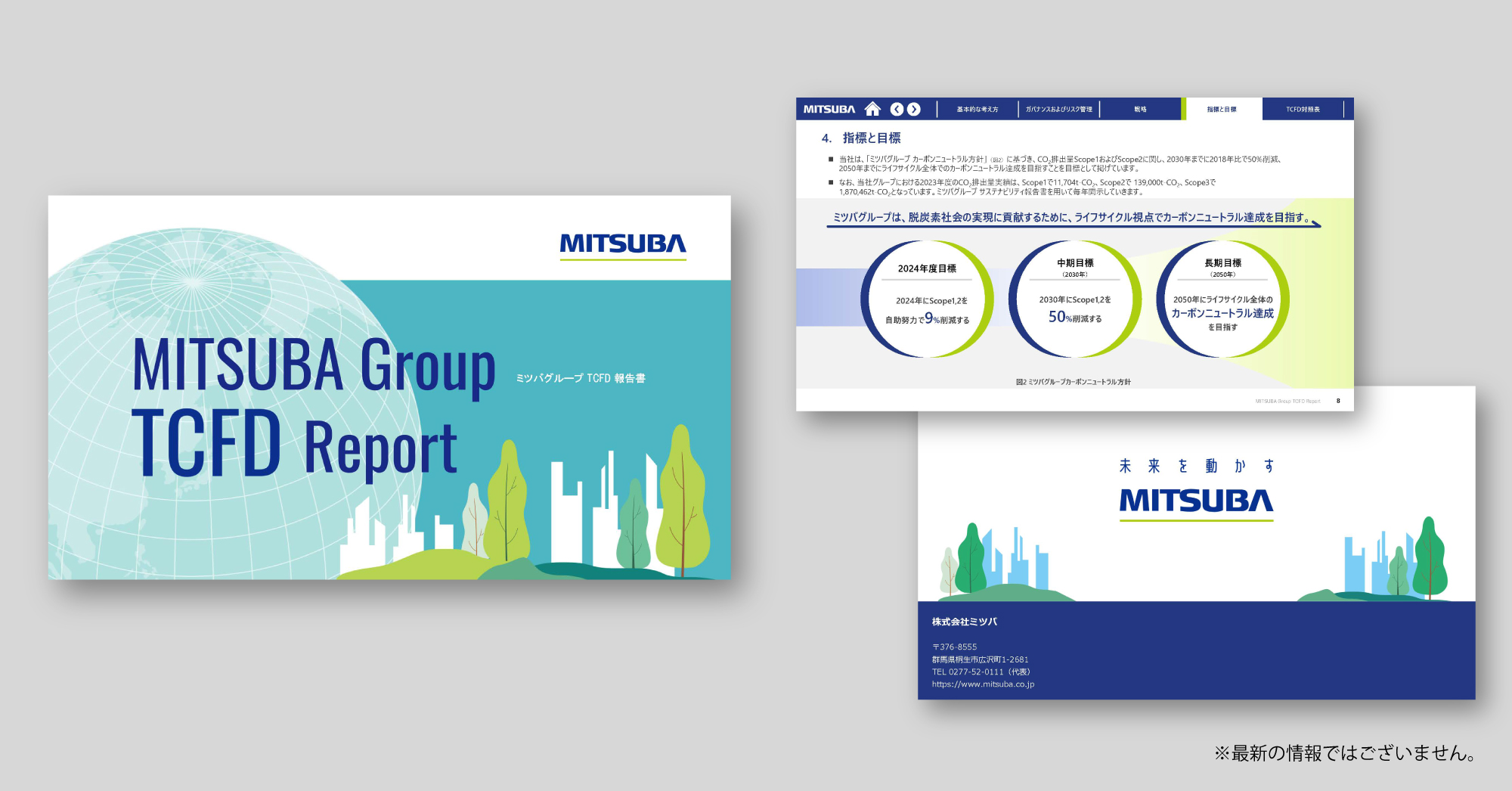 会社案内 / ミツバビジョン 2030 シンボルビジュアル / サステナビリティ報告書 / TCFDレポート / 企業VP動画制作